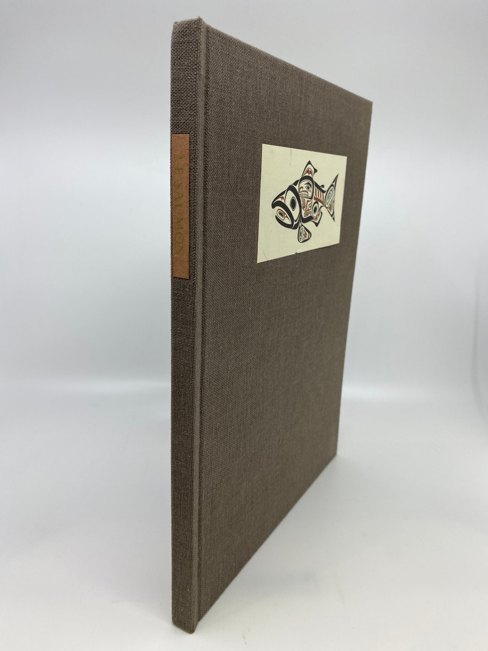 This book features stunning color plates that highlight the importance of salmon as a natural resource, particularly for Canada's Indigenous peoples who rely on their annual return for survival. It includes colored maps illustrating salmon migration routes at sea. Roderick Haig-Brown's compassionate text celebrates these fish and advocates for their protection and continued return to their spawning rivers. The French edition is rare, with an estimated 100-200 copies published. The book is bound in coarse brown cloth, featuring a Bill Reid Haida Salmon design on a front cover paper label and gilt titling on a brown spine label.