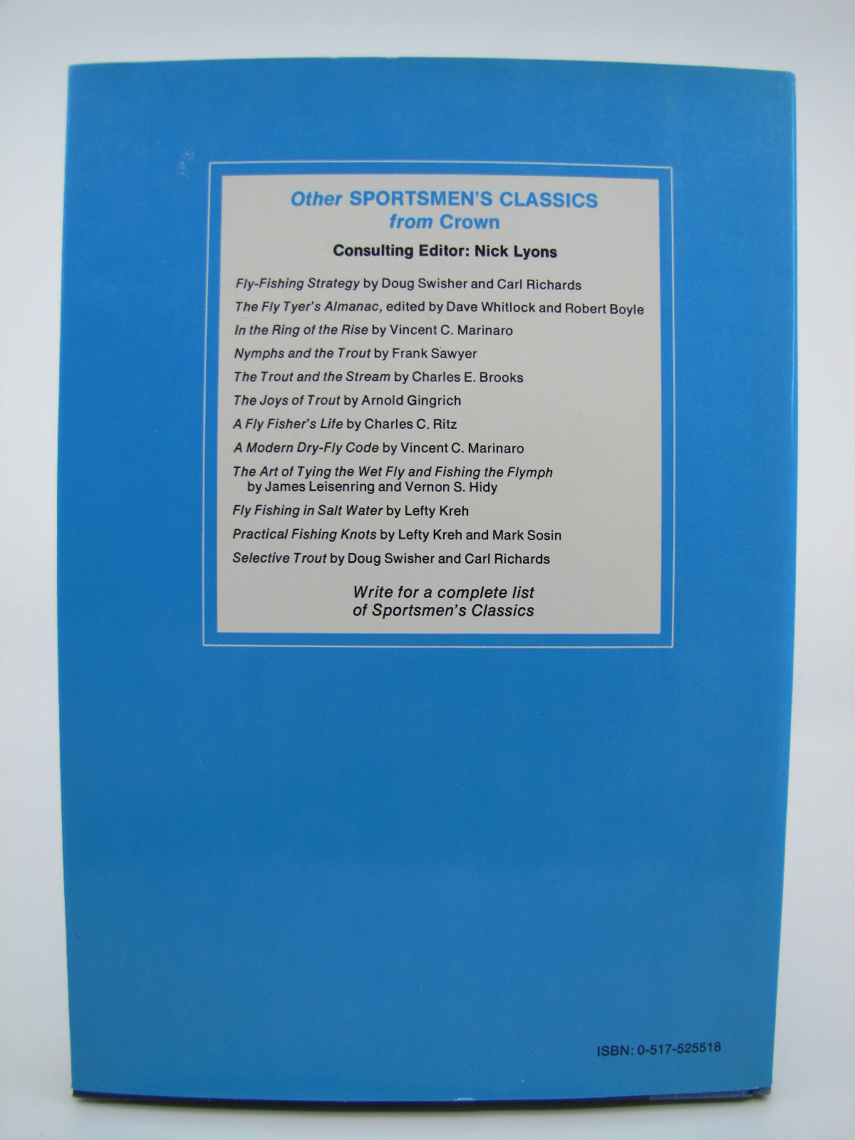 Nymph Fishing for Larger Trout by Charles E. Brooks, Illustrated by Dave Whitlock. 1976. Lyons & Burford. Since nymph comprise more than 90 percent of a trout's normal diet, nymph imitations are potentially the most effective flies for trout - particularly large fish that rarely feed on the surface. Yet nymph fishing remains one of the most difficult and demanding forms of fly-fishing, often shrouded in mystery or half knowledge. Nymph Fishing for Larger Trout will take its place as one of the few real contributions to this important phase of angling. It is a down-to-earth, practical, and highly perceptive book for all fly-fishermen who want to improve their skills.